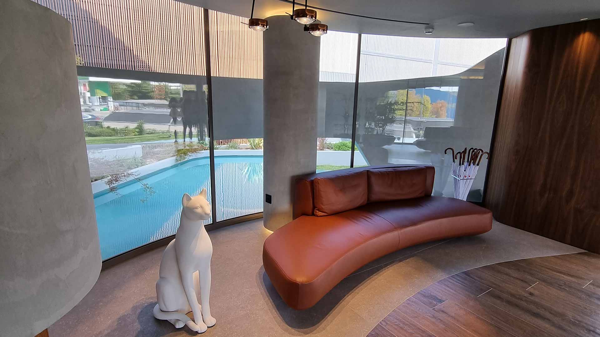 Οι υδάτινες επιφάνειες, όπως οι μικρές ρηχές πισίνες, τα σιντριβάνια ή οι καταρράκτες, έχουν γίνει όλο και πιο δημοφιλείς στην είσοδο εταιρικών γραφείων.